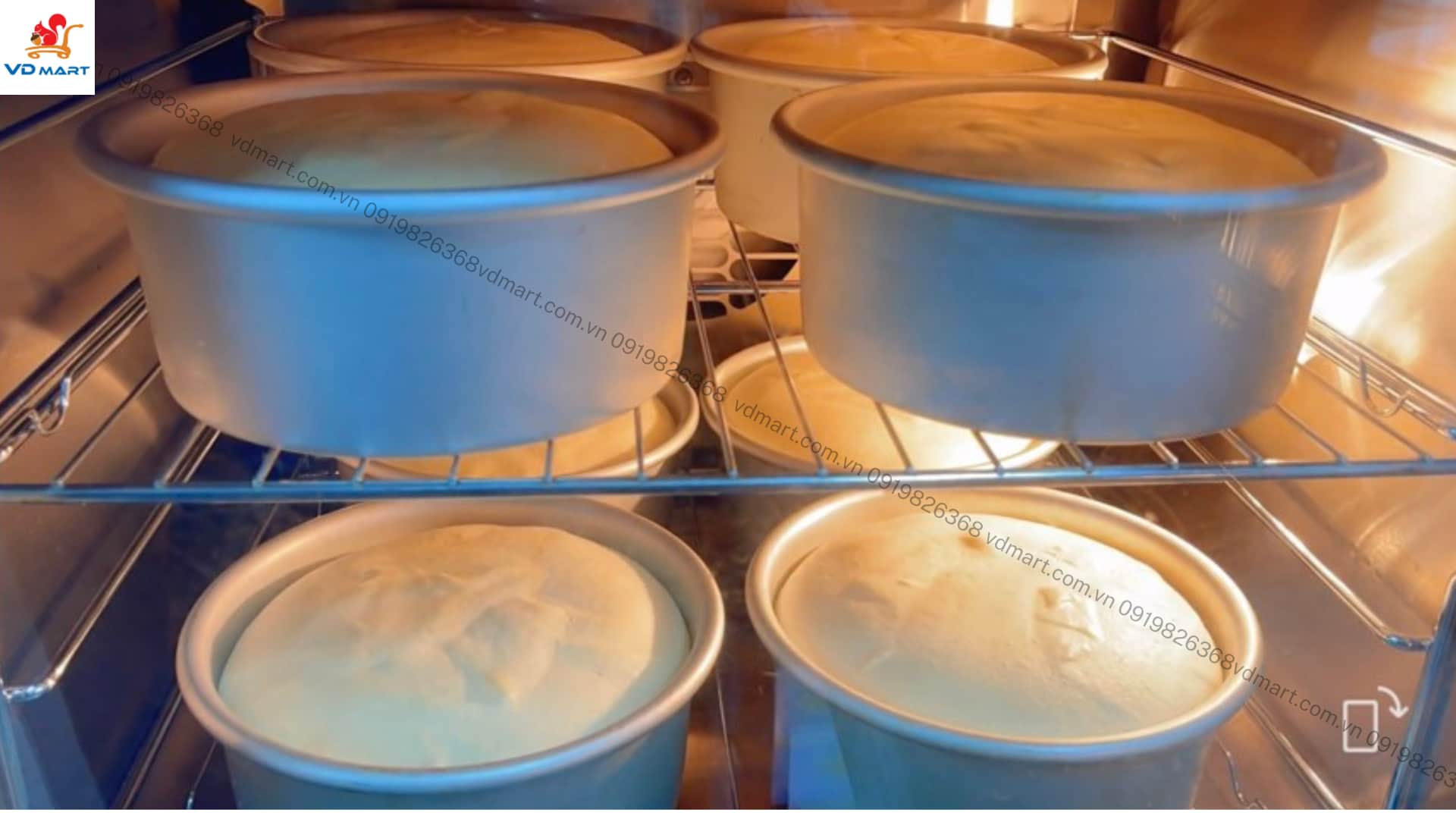 Chúng ta cần hâm lò lên trước 20 phút, vì ở đây nướng số lương bánh lớn, nướng 2 khay, ,ỗi khay cho vào 4 khuôn bánh tổng cộng 8 khuôn. Nên thời gian cho bánh vào nướng cũng lâu hơn, cần tăng nhiệt hâm lò lên 170 để bù trừ nhiệt thất thoát trong quá trình mở cửa lò ra cho bánh vào. Sau khi cho hết 8 khuôn bánh vào thì giảm nhiệt và cài nướng ở nhiệt độ 140 độ trong 50 phút nhiệt đối lưu.