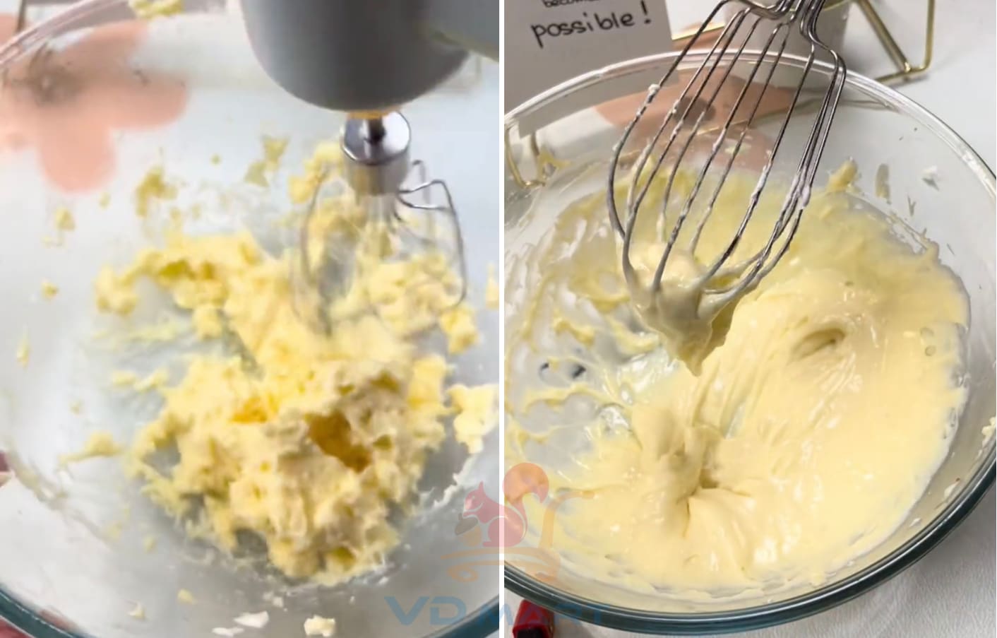 B5:Trước khi đánh với kem, dùng máy phới đánh tơi sốt trứng sữa