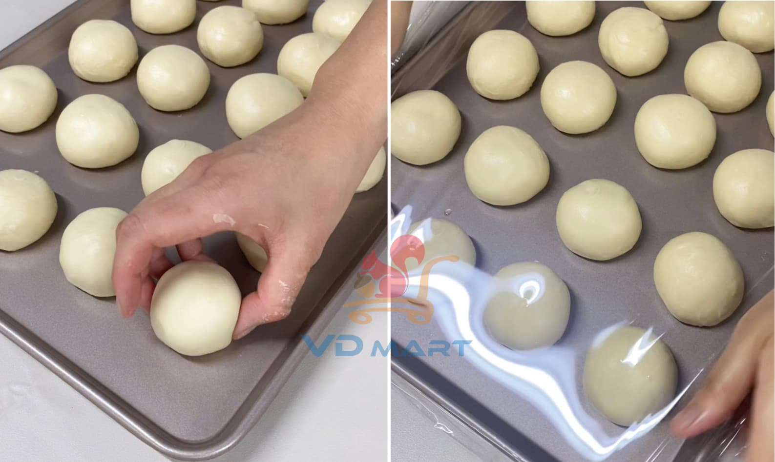 B6: Vê tròn khối bột rồi bọc màng bọc để nghỉ 20 phút