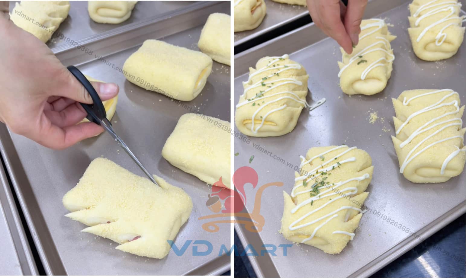 B12: Cắt 2 cạnh bánh để tạo hình bánh