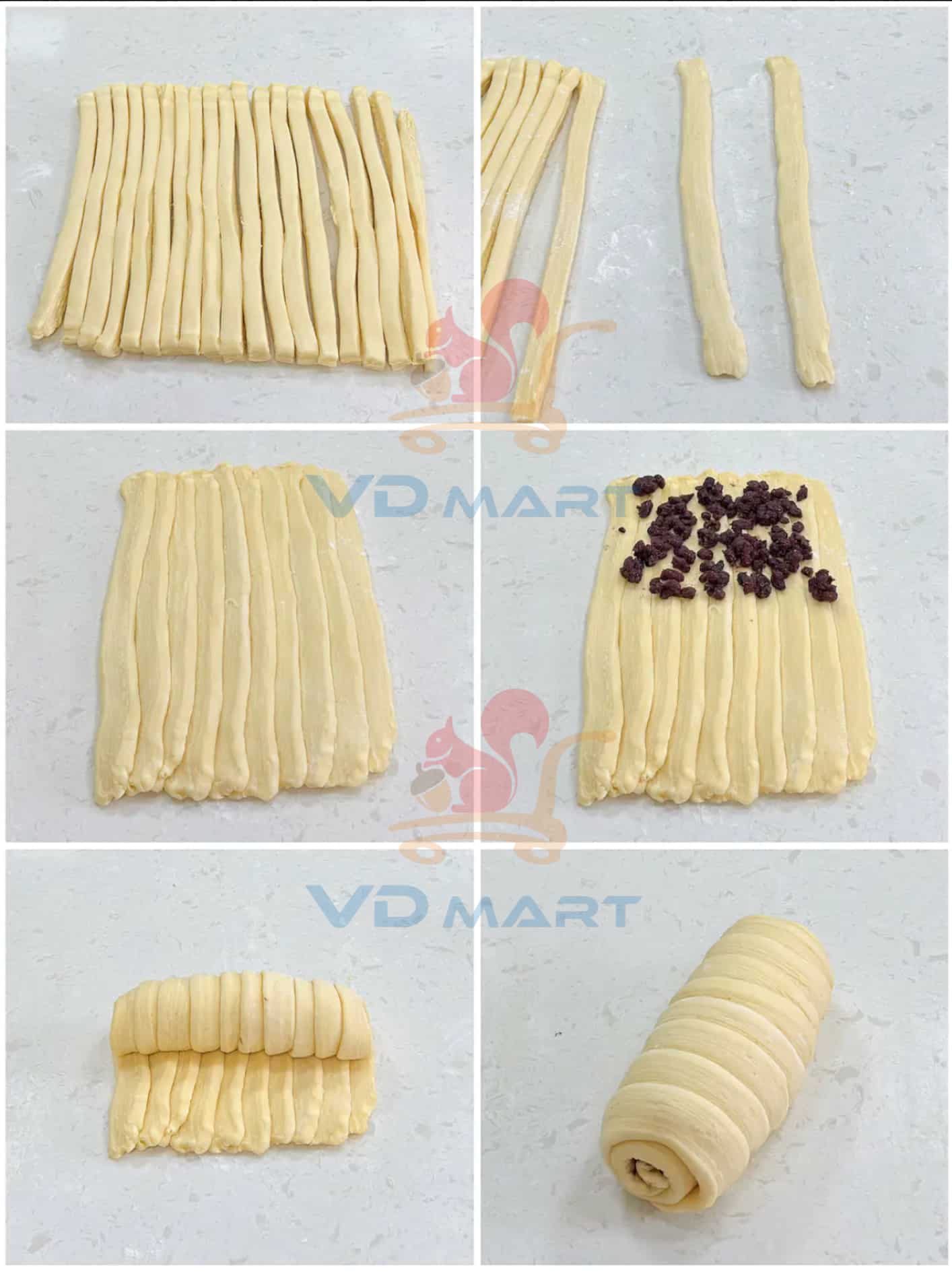 - Cho nhân đậu đỏ vào và cuộn bột lại