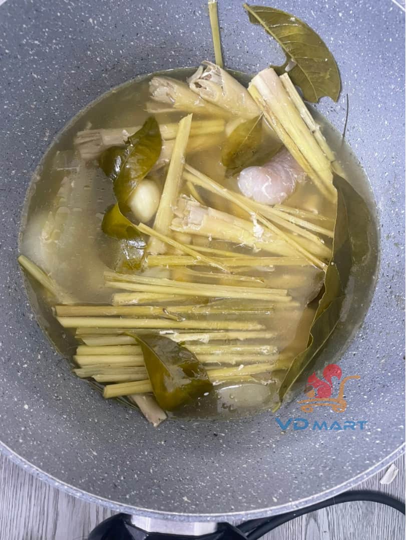 B2:Cho dầu ăn lên đun nóng, cho hỗn hợp hành tỏi ớt đã băm phía trên vào phi thơm. Sau đó vớt hết xác hành tỏi ớt ra