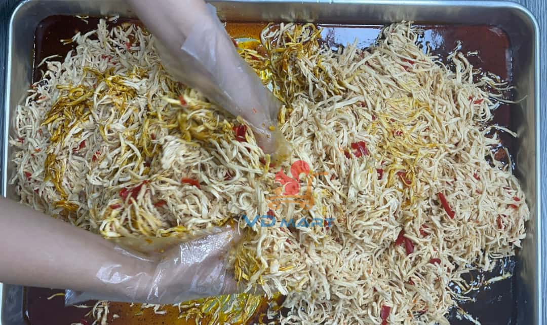 Khô gà là chanh là một trong những món ăn vặt được rất nhiều người yêu thích tại Việt Nam. Tuy nhiên, loại món ăn này hiện nay được làm giả rất nhiều trên thị trường. Những miếng khô gà mà chúng ta ăn rất có thể là được chế tạo từ sắn dây, hay nguy hiểm hơn nữa là từ thịt gà ôi thiu, đông lạnh đã qua nhiều năm. Vậy nên, rất nhiều mẹ muốn tự tay mình làm khô gà để đảm bảo chất lượng, đảm bảo vệ sinh, an toàn cho mọi gia đình. Nếu bạn đang phân vân không biết nên làm khô gà như nào, hãy thử ngay công thức VDMART chia sẻ dưới đây, đảm bảo ai ăn cũng ghiền