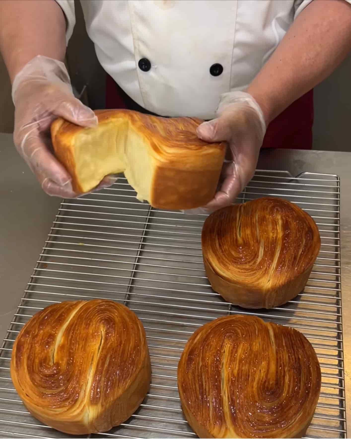 Ảnh: Nhồi bột bánh mì ngàn lớp