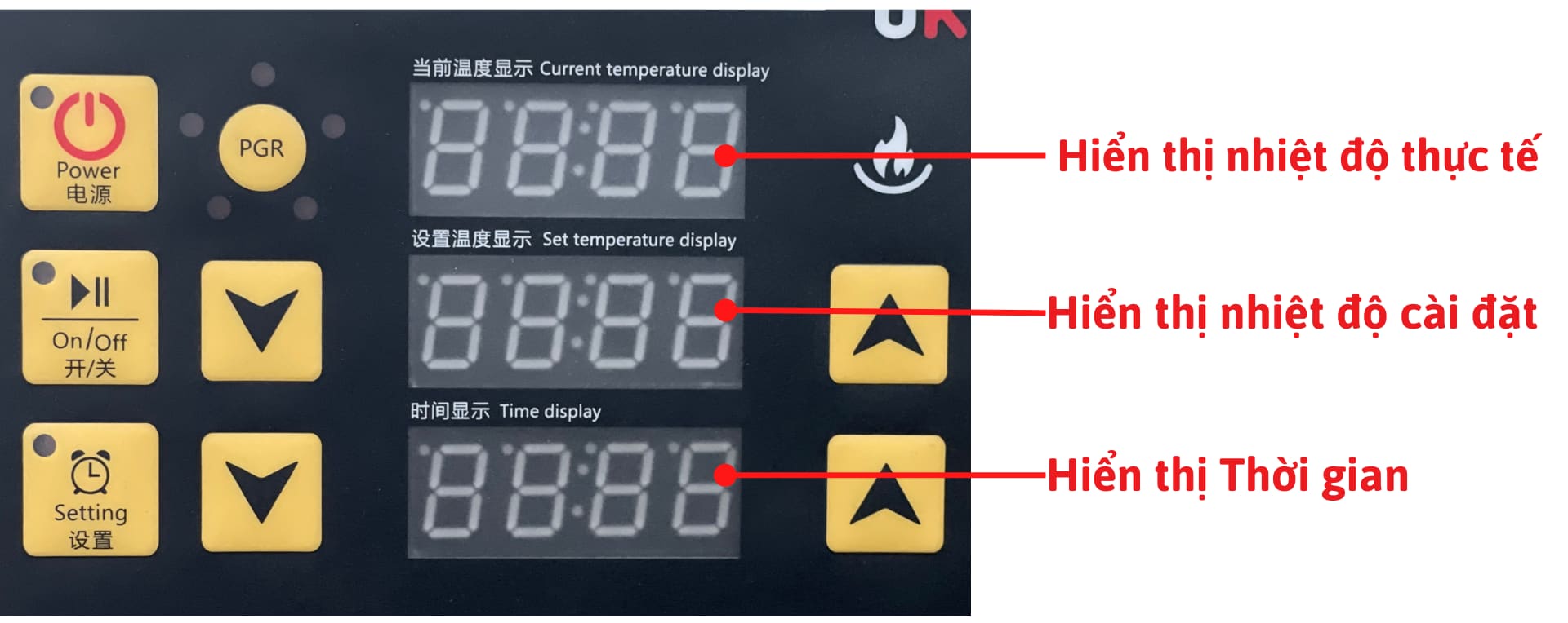 B7: Nhấn nút PGR lần 3 để chọn Nhiệt độ, Thời gian nướng cho chu trình biểu đồ nhiệt thứ 3. Chọn tương tự B6