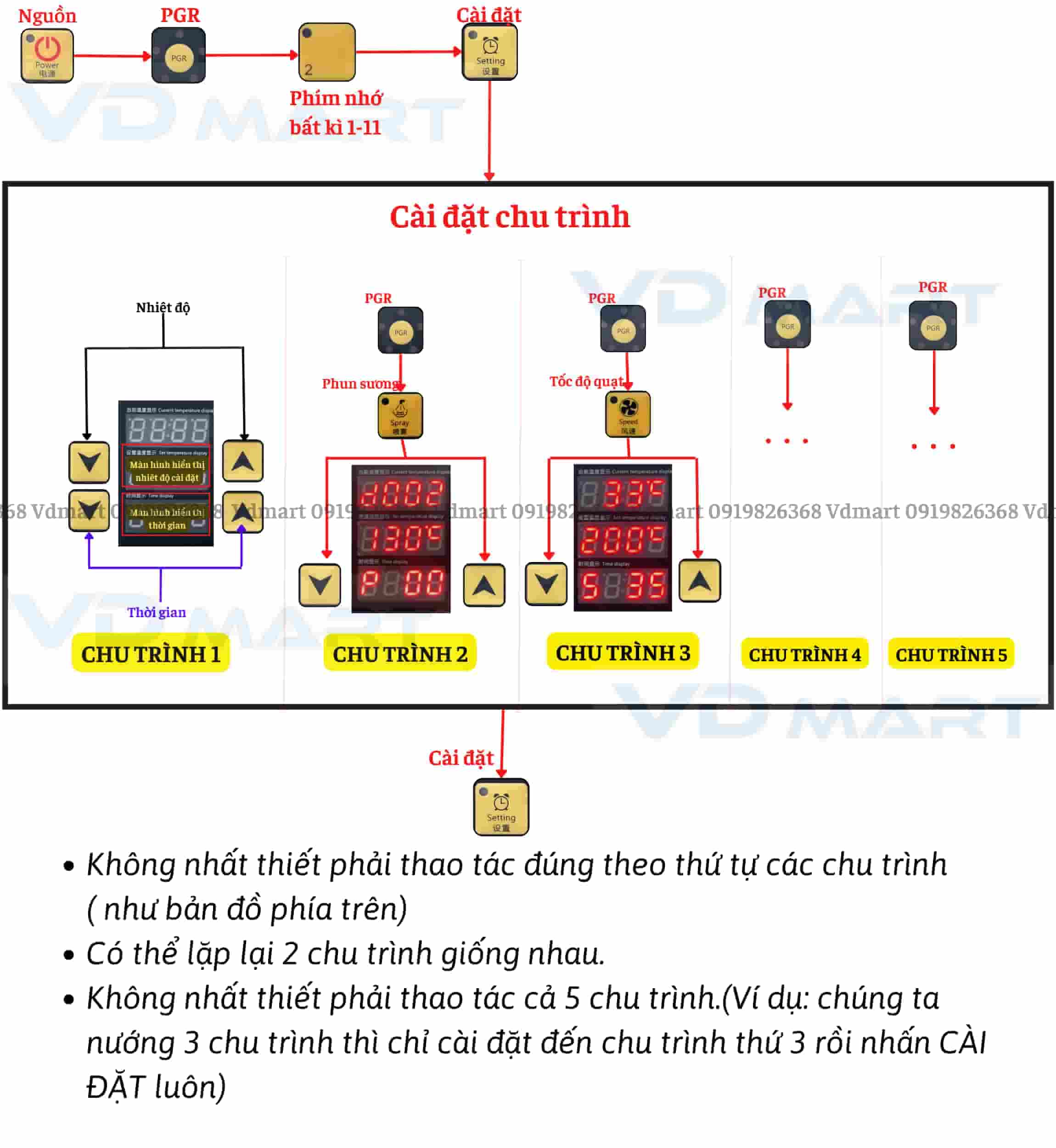 B6: Cài đặt các chu trình nhiệt độ, phun sương theo ý muốn (thực hiện tương tự các bước 4 đến bước 9 phần 3)