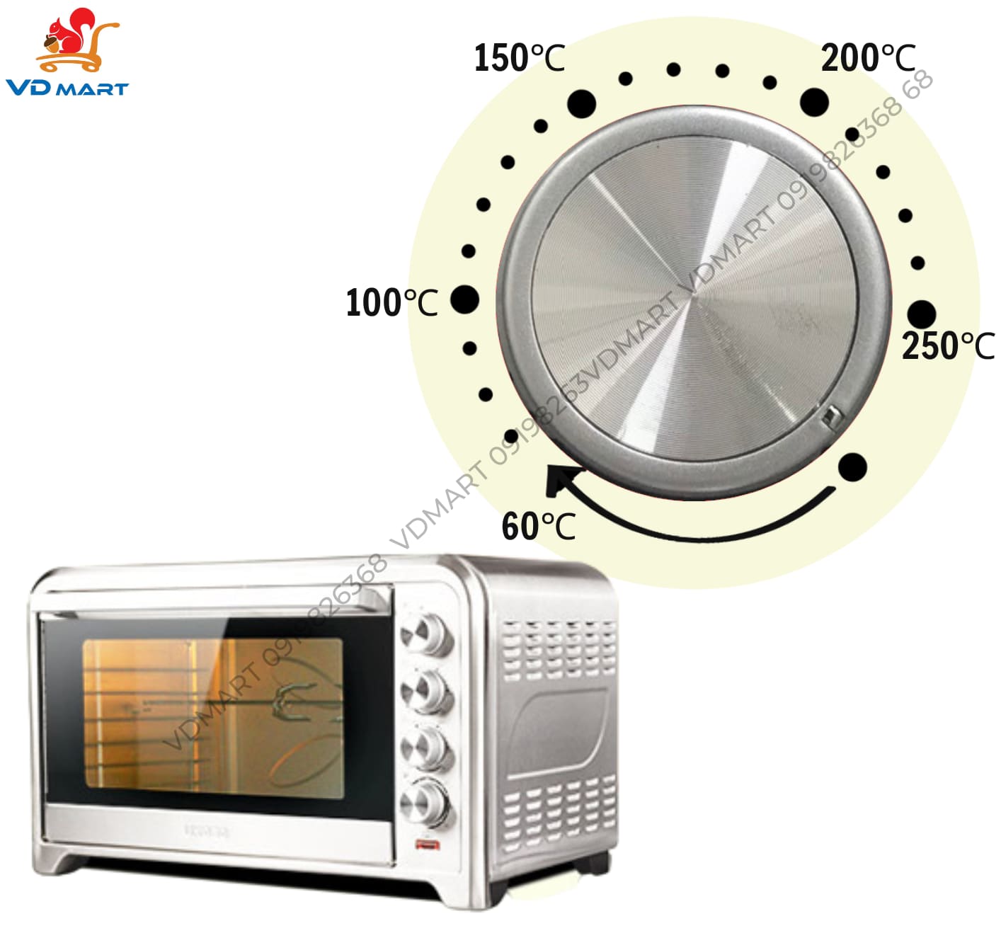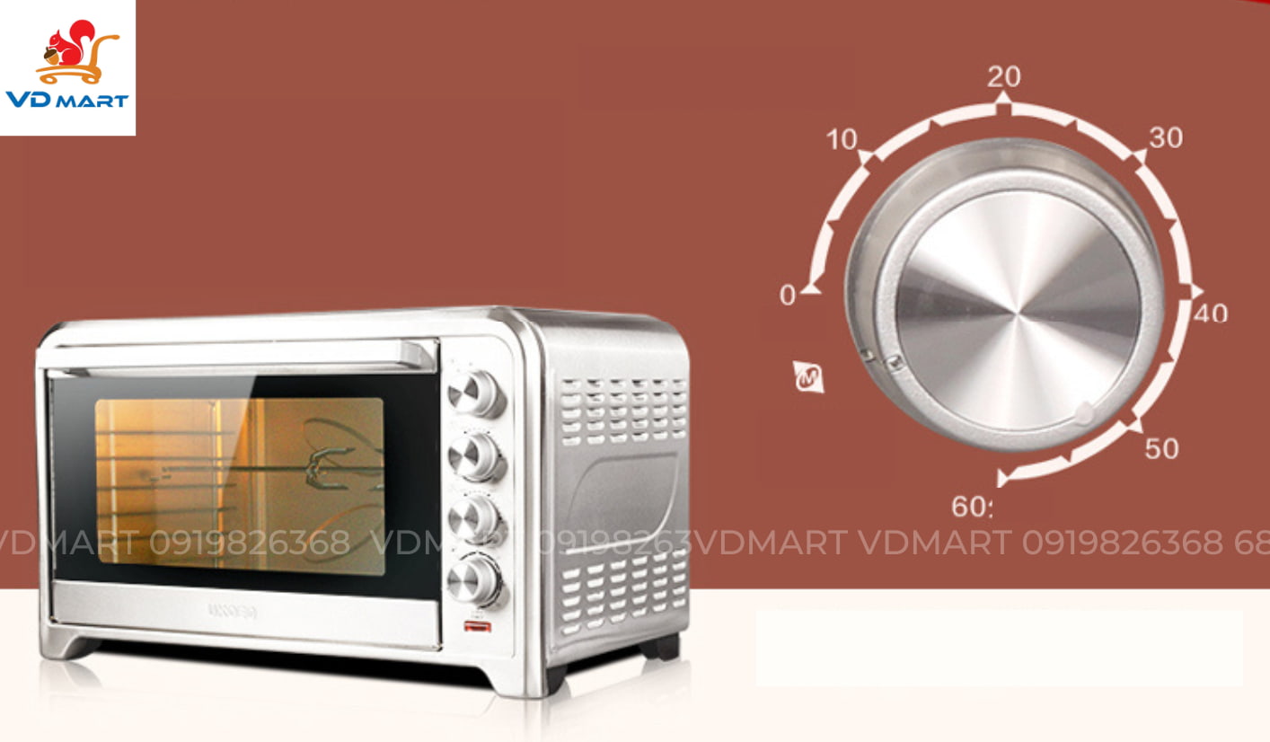 - Chức năng hẹn giờ: khi hết thời gian nướng, lò sẽ tự động tắt và báo kêu. Thời gian hẹn giờ lên đến 60 phút