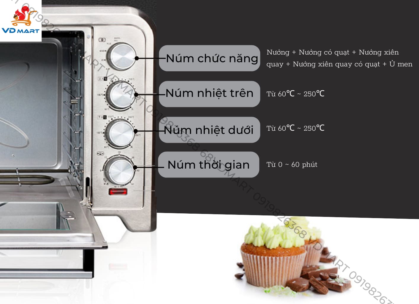 - Đèn lò giúp dễ dàng quan sát bánh trong quá trình nướng