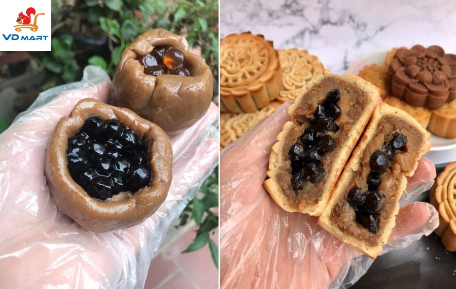 4. Nhân trà sữa: Một loại nhân mới xuất hiện 1-2 năm gần đây. Những ai là tín đồ món đồ uống trà sữa trân châu quốc dân, chắc chắn sẽ không thể bỏ qua loại nhân đặc biệt này.