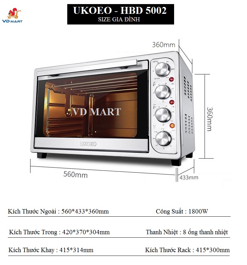 Thông Số lò nướng 52l Ukoeo HBD 5002 [Lò Nướng Gia Đình]