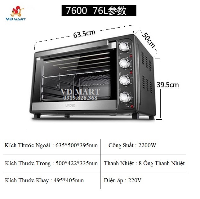 Thông Số lò nướng 76l Ukoeo HBD 7600