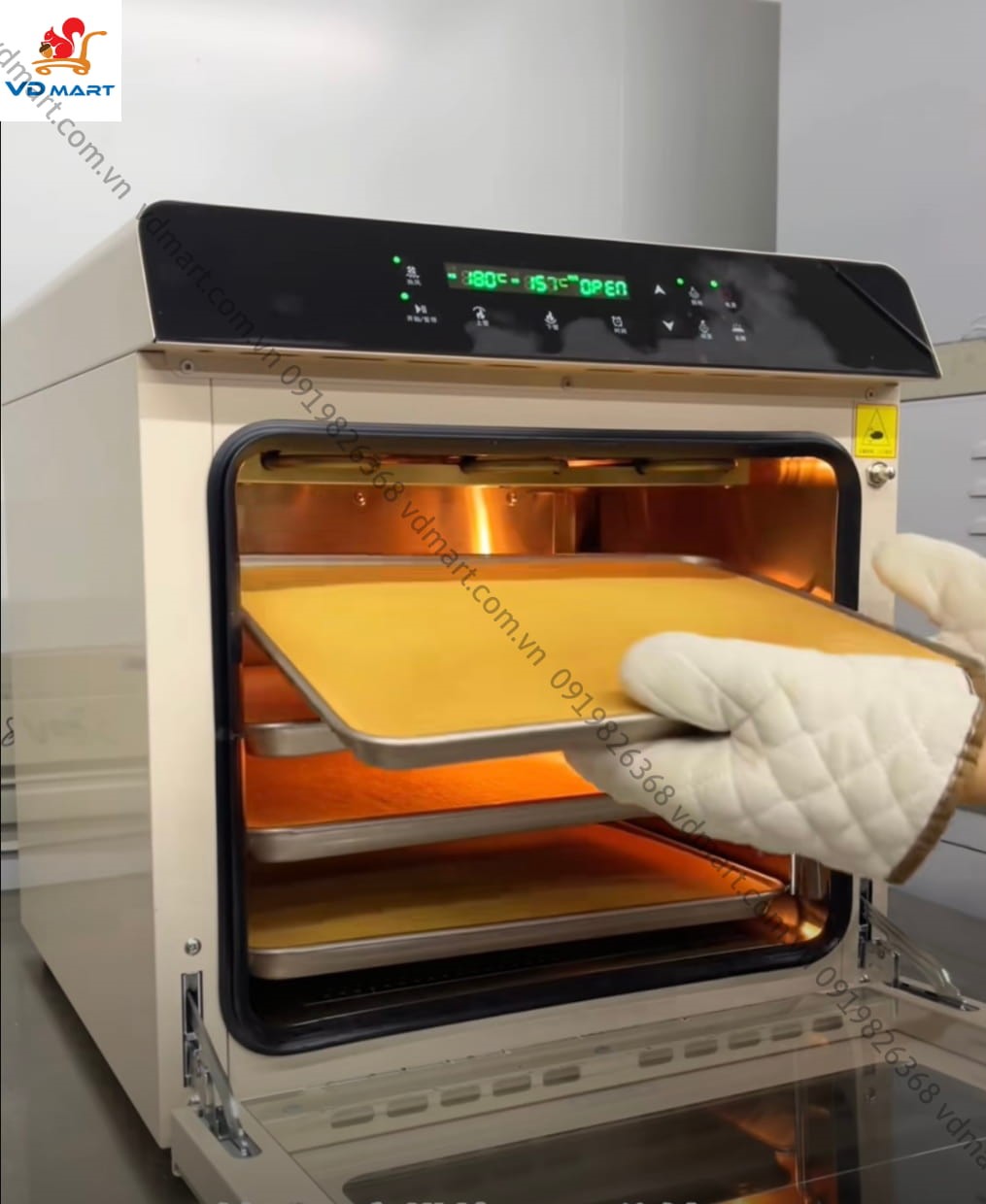 - Thiết kê quạt quay-ngưng giúp bánh không bị khô như những lò đối lưu khác.