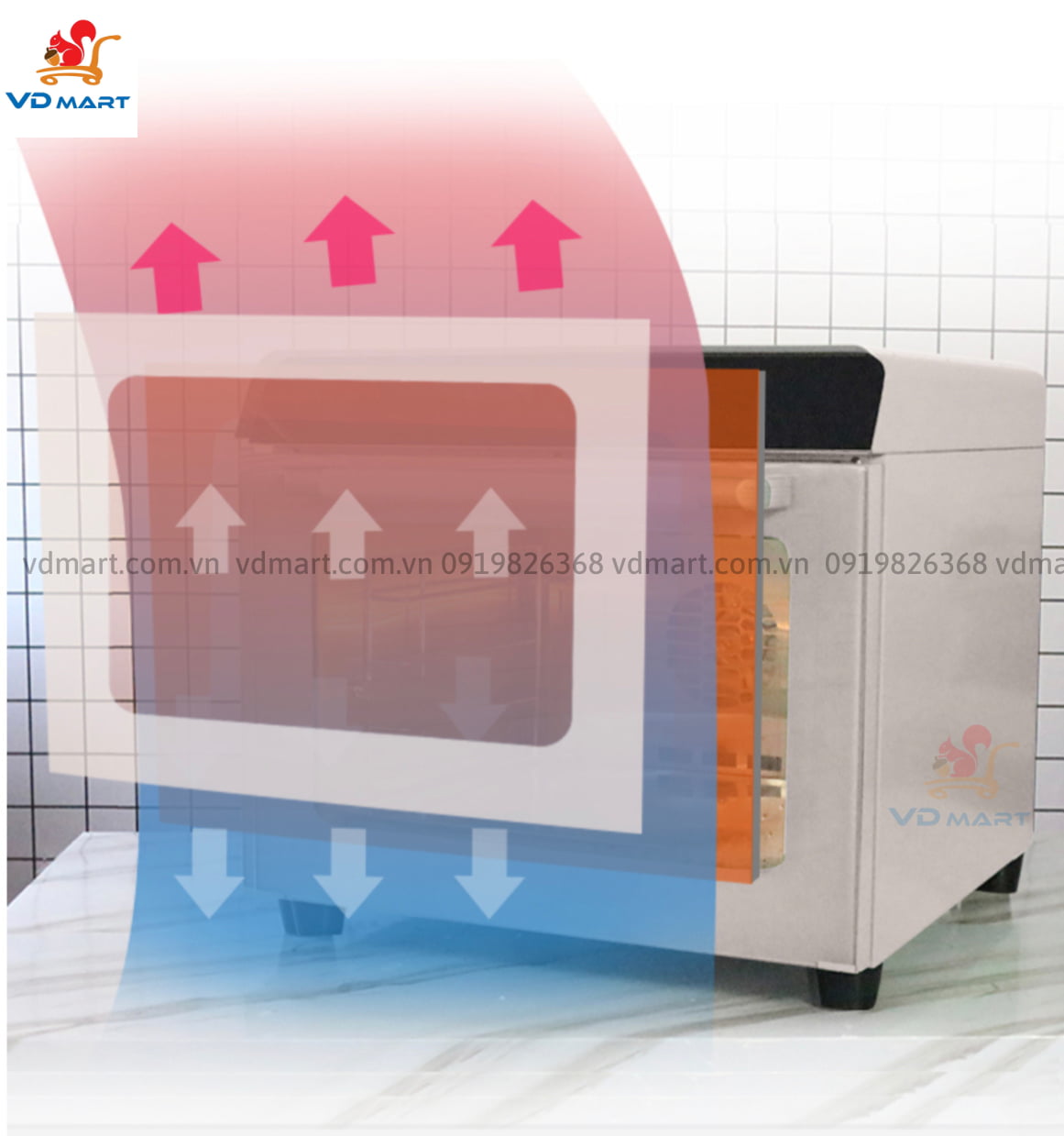 - Cánh quạt quay đảo chiều giúp nhiệt đi đều mọi vị trí ở khắp khoang lò.