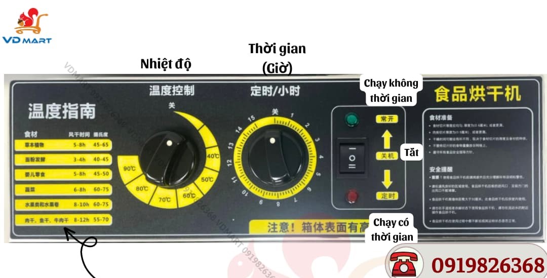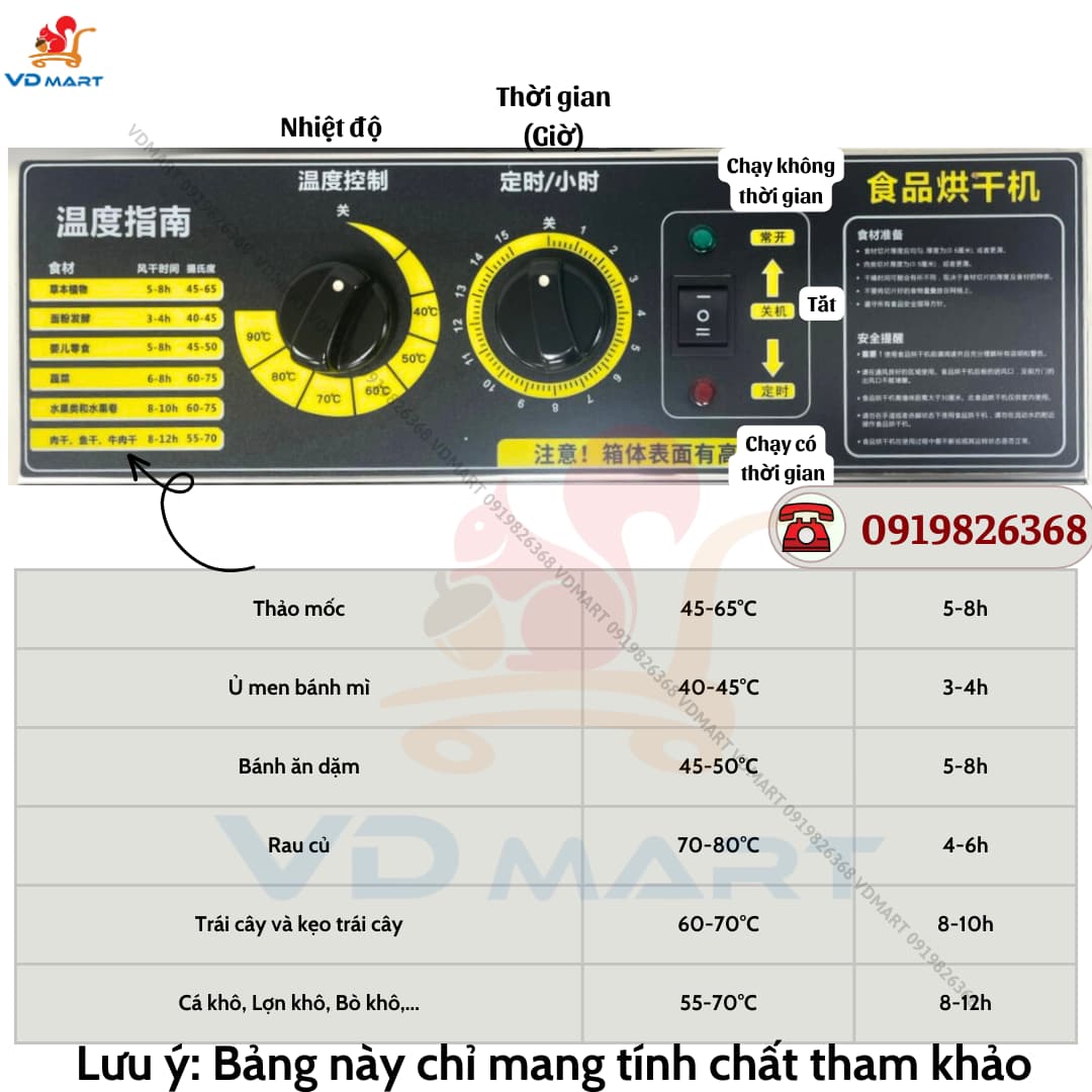Bước 3: Chọn nhiệt độ và thời gian sấy phù hợp, nhiệt độ và thời gian sấy tùy thuộc vào loại thực phẩm cần sấy.