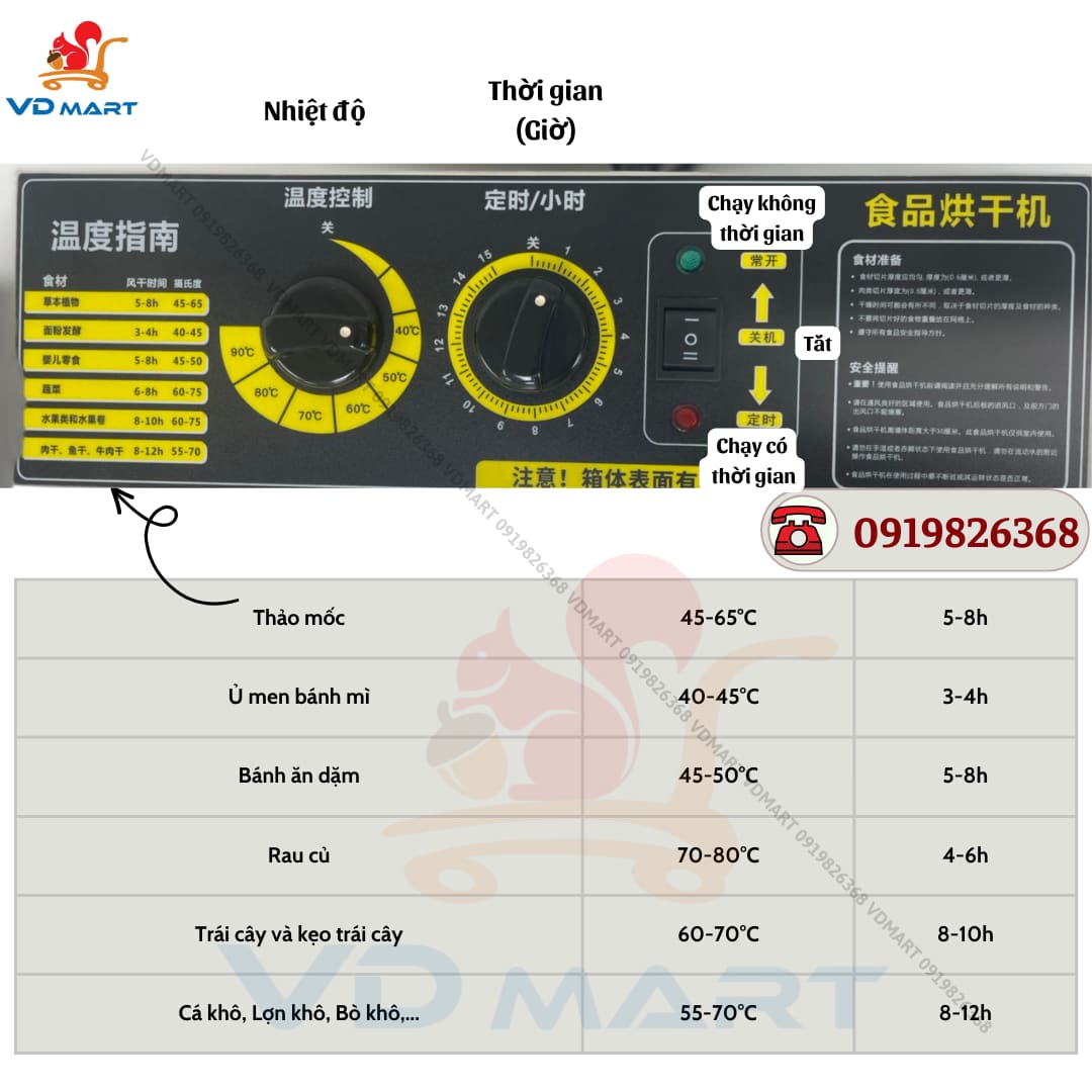 Bước 3: Chọn nhiệt độ và thời gian sấy phù hợp, nhiệt độ và thời gian sấy tùy thuộc vào loại thực phẩm cần sấy.