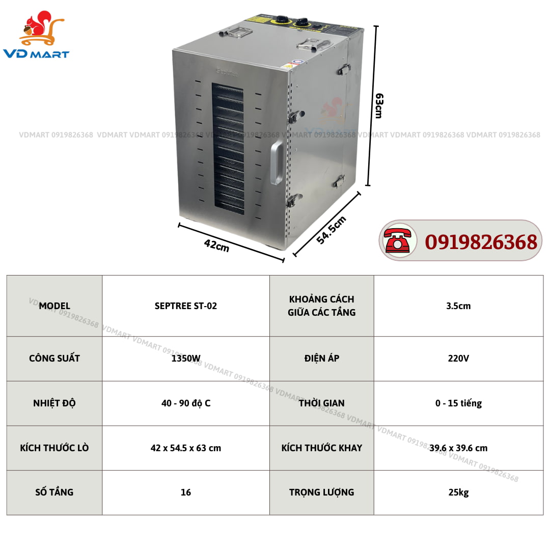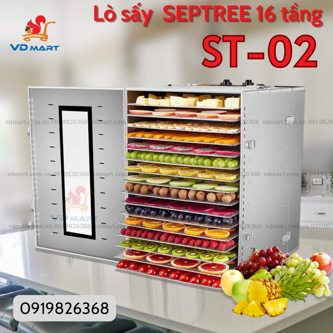 Tính năng thông minh và hiệu quả của lò sấy 16 tầng Septree giúp bạn sấy khô thực phẩm một cách đáng tin cậy và tiết kiệm thời gian, năng lượng.
