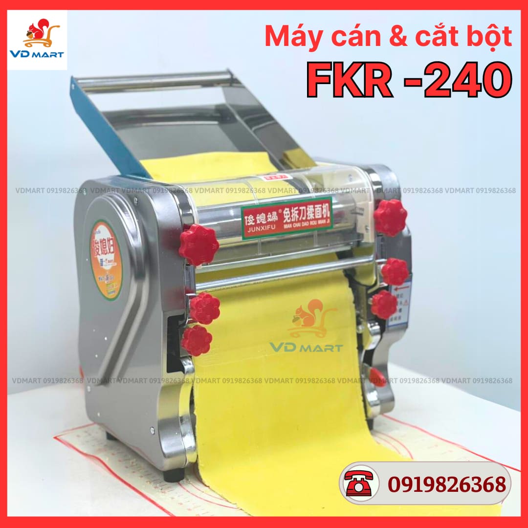 Máy Cán Bột, Cắt Bột Làm Mì FKR-240 -750W à chiếc máy có thể cán mỏng cho tiệm bánh bao, bánh mì, cắt sợi bột mì bánh canh tự động cho cơ sở sản xuất mì tươi, hoành thánh, mì lạnh . Trong chốc lát các sợi mì dai, dài, được máy thái sợi mỏng đều mà việc thái tay không thể làm được