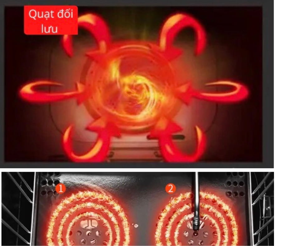 Lò nướng đối lưu tỏa nhiệt bằng cách tạo khí nóng từ quạt đối lưu và ống thanh nhiệt đối lưu để làm chín thực phẩm. Sản phẩm tạo ra từ lò nướng đối lưu sẽ chín đều, mềm và luôn giữ được độ ẩm khác hoàn toàn so với tình trạng nửa sống nửa chín hay quá khô khi chúng ta sử dụng các loại lò nướng thông thường.
